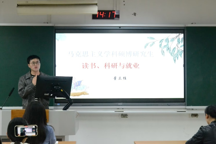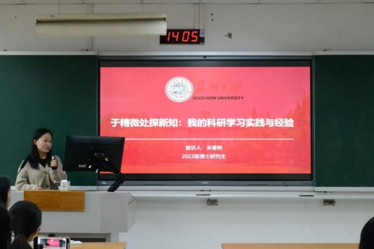 班会以“认知深化—实践指导—规划落地”为主线,通过三大核心环节层层推进。“叩问初心 明晰方向”环节通过学习黄大年等先进教育科研工作者事迹影像,让同学们对“科研报国”的时代内涵有了更深刻的认知;“深学笃行 知行合一”环节,博士生关春艳、董立桂、王越玥三位优秀朋辈代表分享学术科研经验,他们强调理论与实践相统一的重要性,鼓励大家于细微处钻研、以阅读强根基、向实践求创新,为新生提供了宝贵学习参照;“启智未来 生涯规划” 环节,学生代表踊跃发言,将“科研报国”的宏大愿景转化为具体可行的个人目标,让理想有了清晰的落地路径。