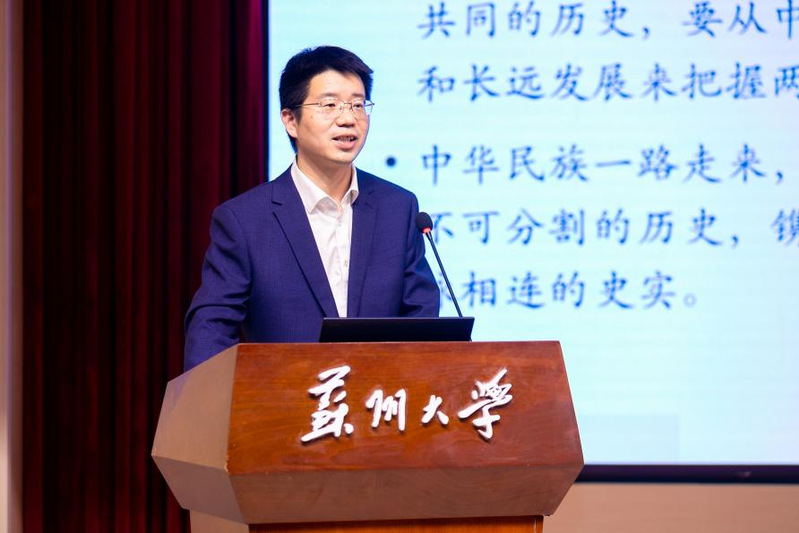 主旨报告第三阶段由苏州大学期刊中心主任、《苏州大学学报》(哲学社会科学版)副主编江波主持,江南大学91直播 二级教授刘焕明、91直播-今日最火直播间推荐 教授孟飞、91直播-今日最火直播间推荐 教授王鹤亭3位专家,分别以《新时代社会主义民族关系面临的挑战及应对——以反对“两种民族主义”为视角》《何以可能、何以必要、何以实现:习近平文化思想推动铸牢中华民族共同体意识》《铸牢中华民族共同体意识的两岸路径》为题做主旨报告。